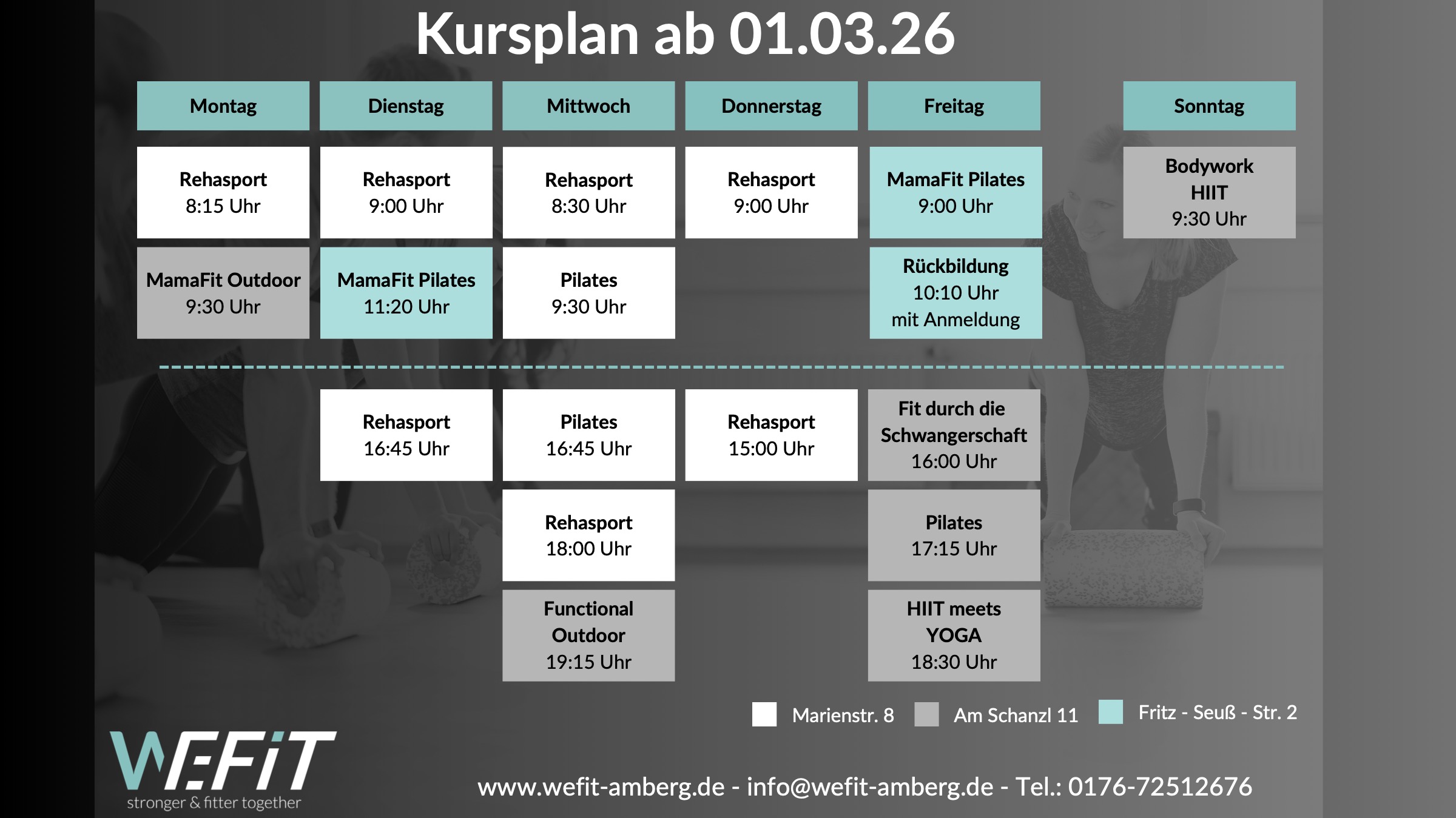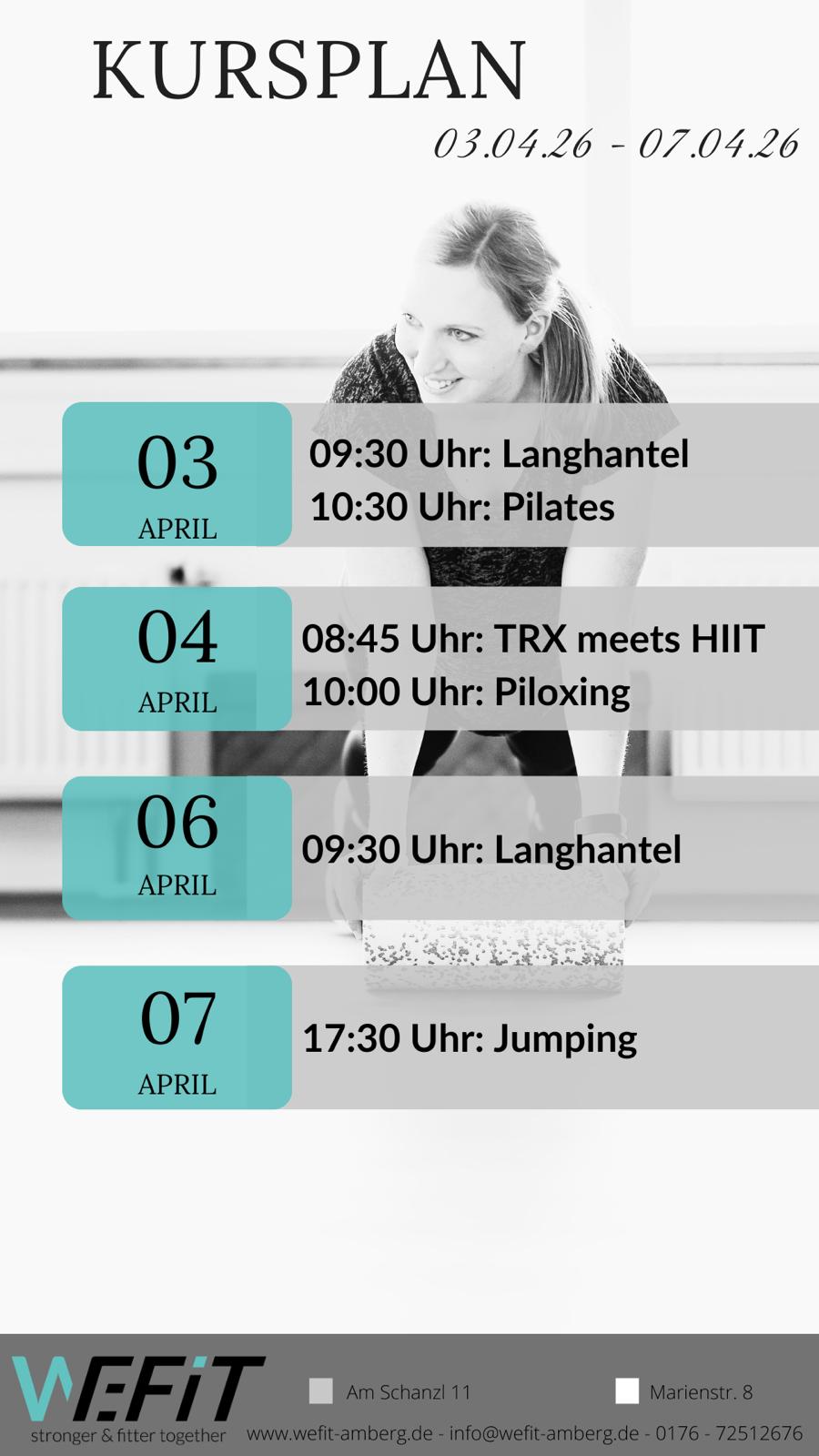 Auf dem Kursplan sind alle aktuellen Kurse hinterlegt.